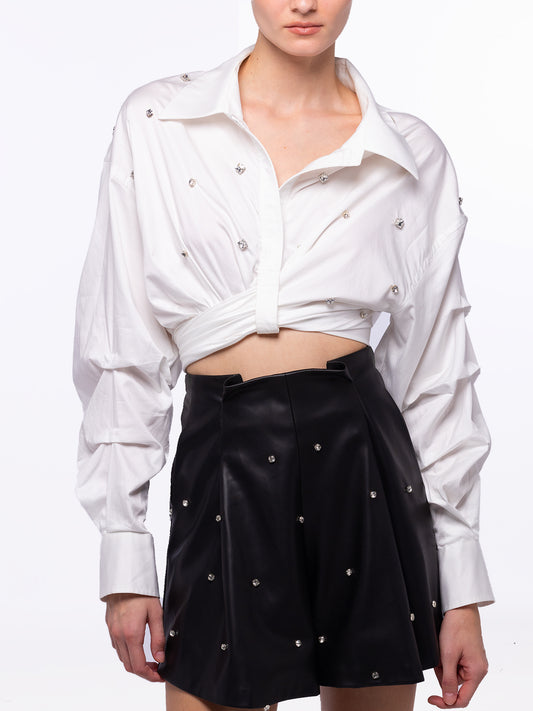 Shine Bright in the Nora Crystal Burst Crop Shirt. This shirt works effortlessly with any...