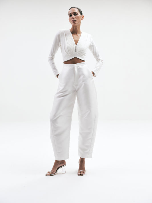 Create several looks with our Statement bodysuit with flattering draping. Pair it with our alaia...