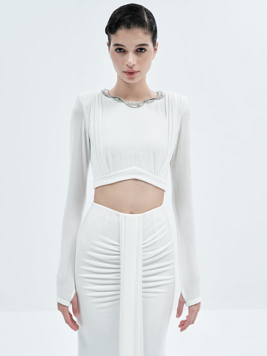 Match our Tiana pleated drape crop top with Giana skirt for a stand out co-ord...
