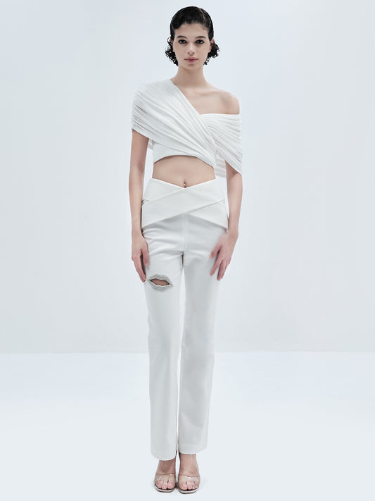 Make a statement in our Lana Crop Shirt, featuring a one-shoulder design and ruched sleeve...