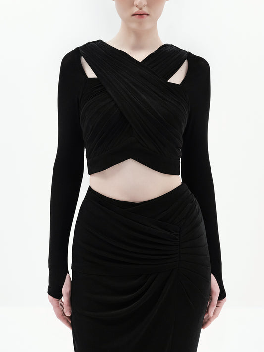 Match our Tiana pleated drape crop top with Giana skirt for a stand out co-ord...