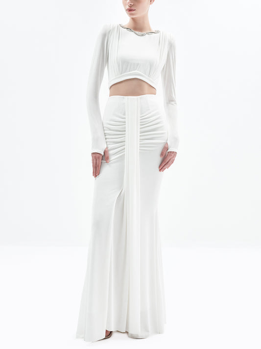 Find a true match for this drape cross over skirt with our Tiana crop top...