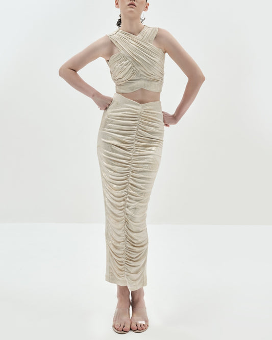 Sophisticated and versatile, Our Rina Skirt is a ruched statement skirt that features a flowing...