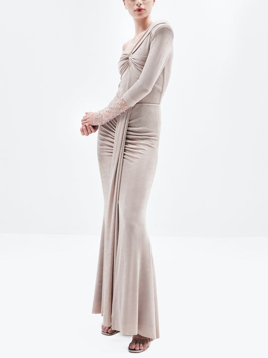 Flattering and feminine, this side-ruched maxi skirt gently hugs your curves while offering graceful movement,...