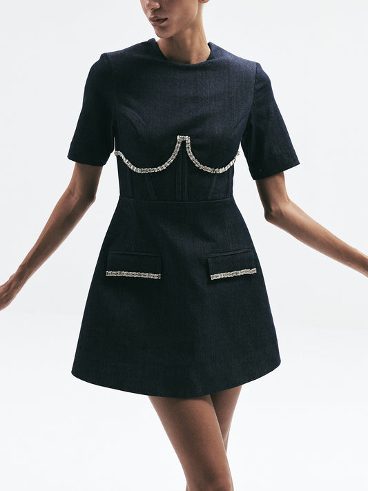 Turn heads in our Corset Detail Embellished Mini, a striking design featuring a structured corset-inspired...