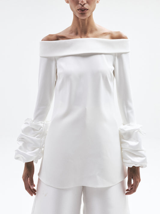 This off the shoulder top features romantic ruffled sleeves and a flattering silhouette, perfect for...