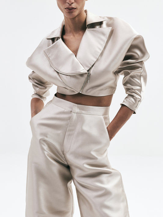 Combining the classic elements of a biker jacket with the versatility of a crop top,...