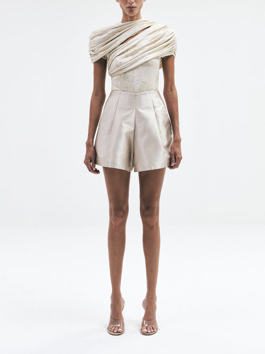 Sculpted in scuba mesh ,Mix and match our draped statement bodysuit with our Laticia shorts,...
