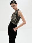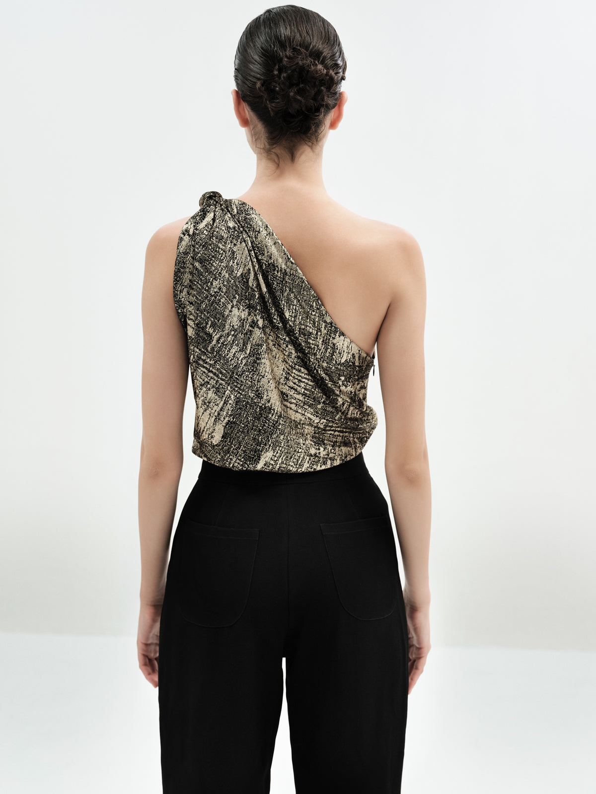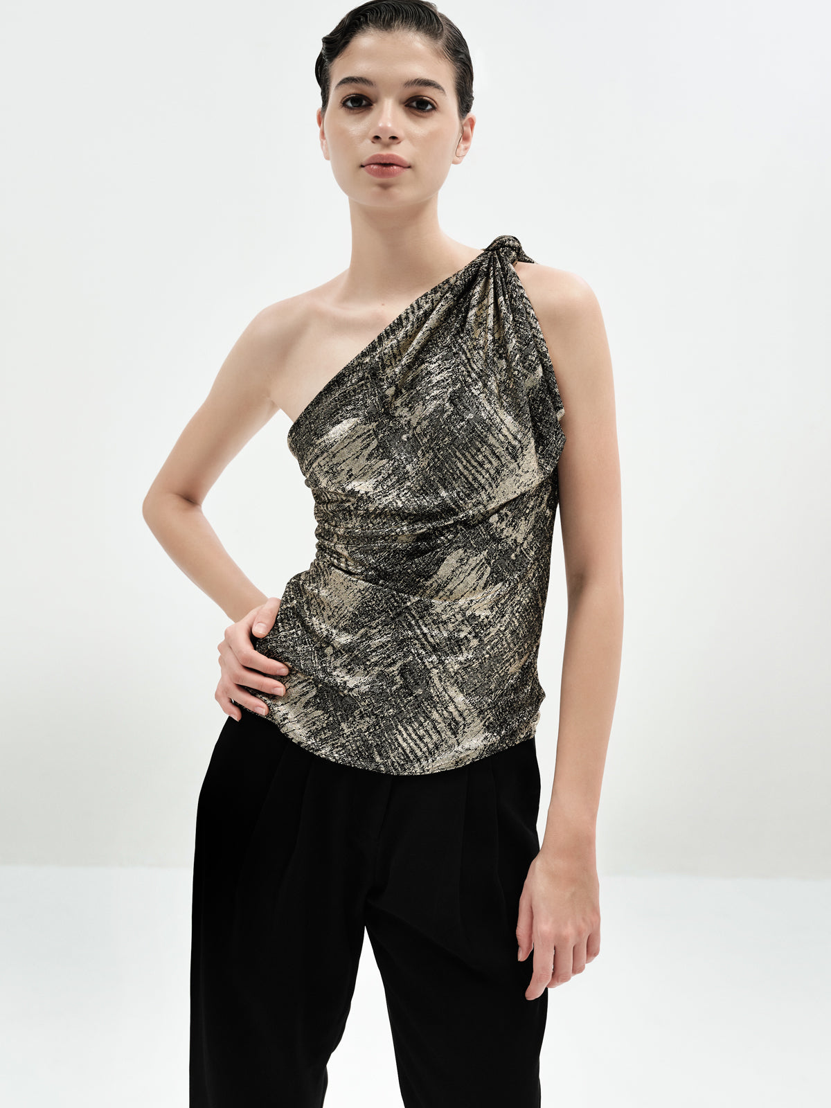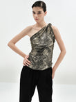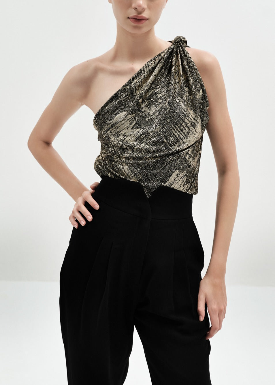 Refined and effortlessly stylish, this fluid top features a one-sided knot that adds a touch of sculpted elegance. Pair it with any of our pants, skirts, or shorts for an understated yet elevated look.