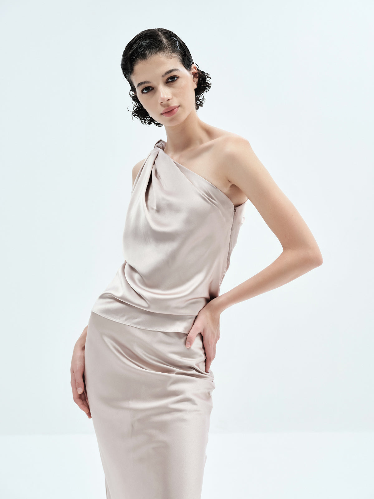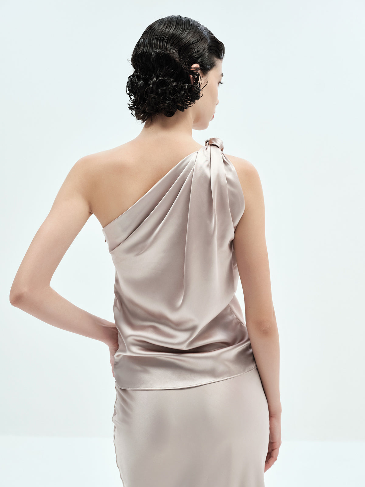 Refined and effortlessly stylish, this fluid top features a one-sided knot that adds a touch of sculpted elegance. Pair it with any of our pants, skirts, or shorts for an understated yet elevated look.