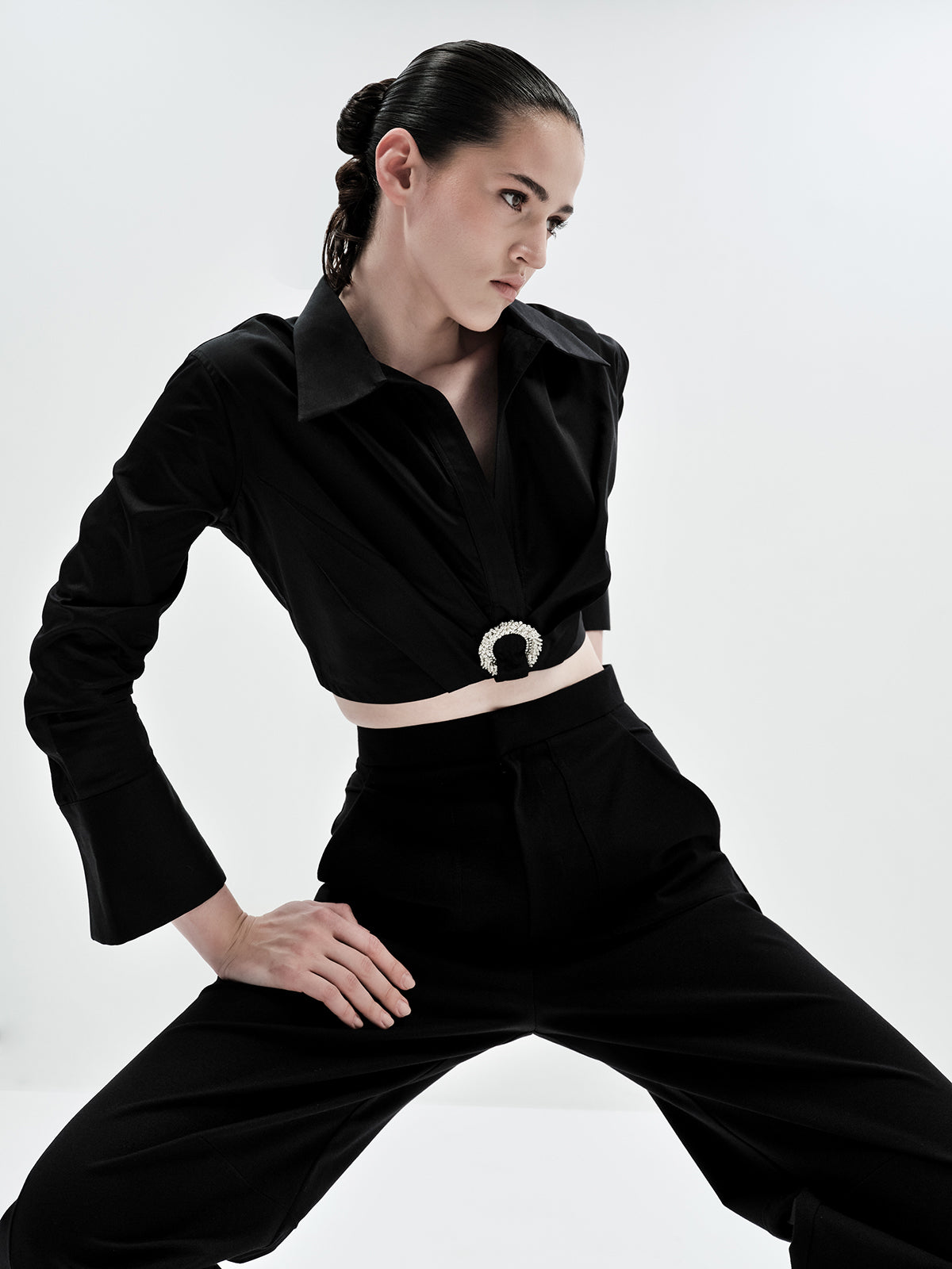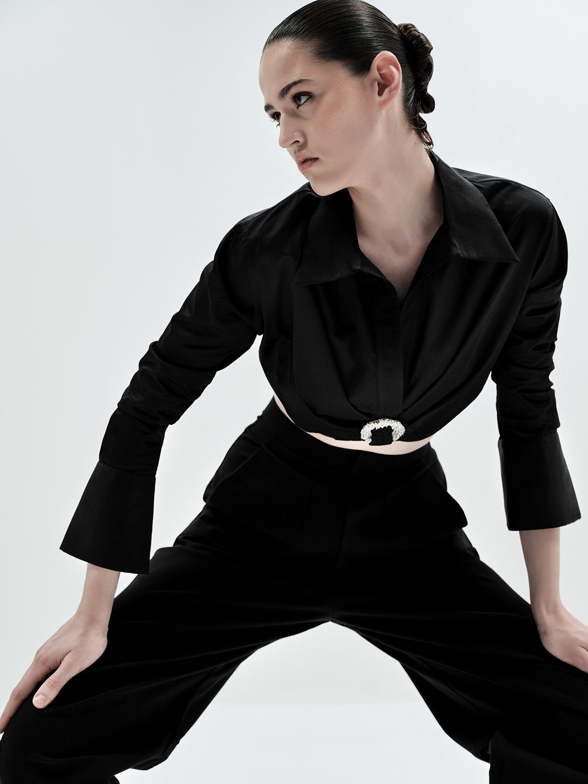 Shirt, effortlessly chic with an embellished center for a touch of glamour. This versatile piece pairs seamlessly with any of our recommended bottoms—whether shorts or pants—allowing you to create multiple elevated, stylish looks