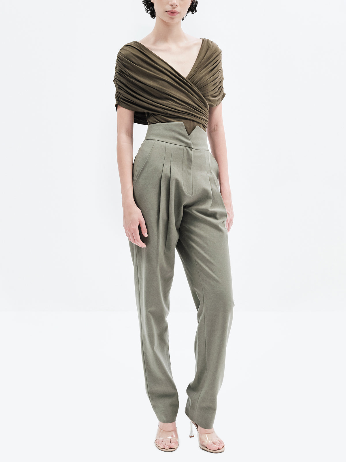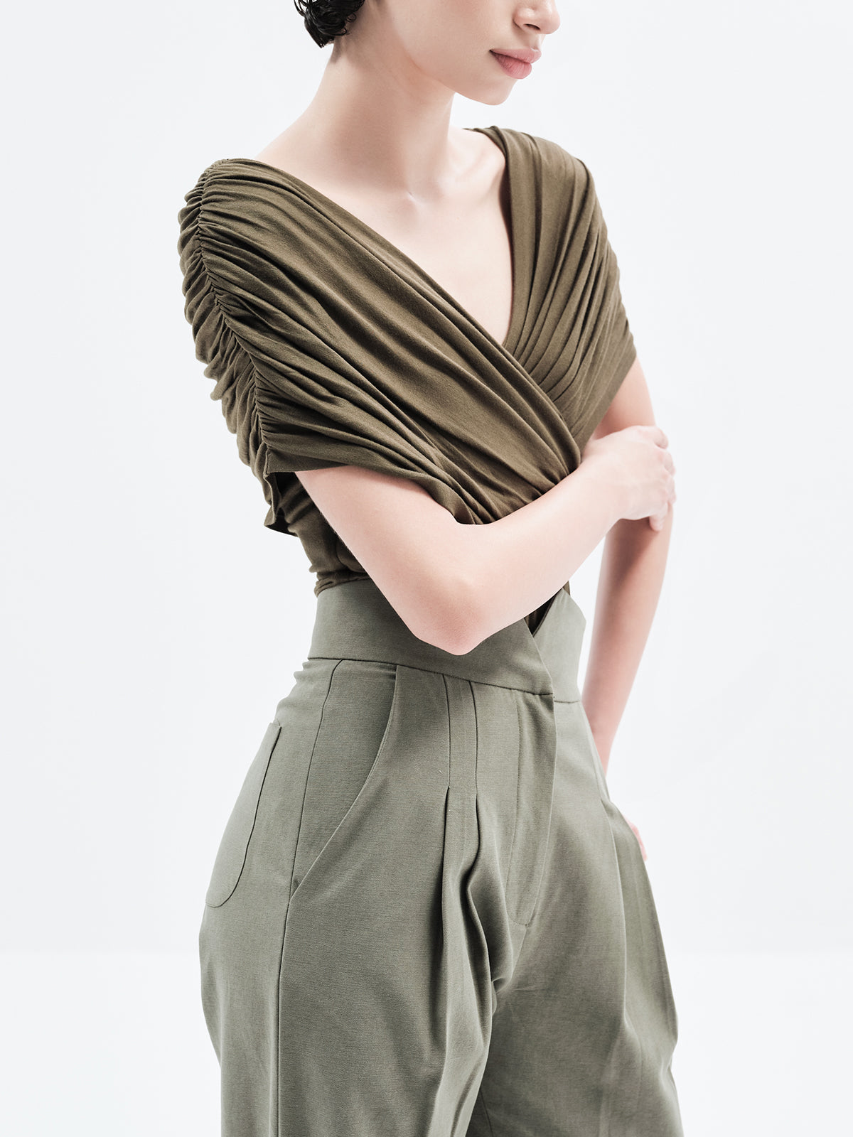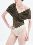 Ruched Draped Bardot Bodysuit