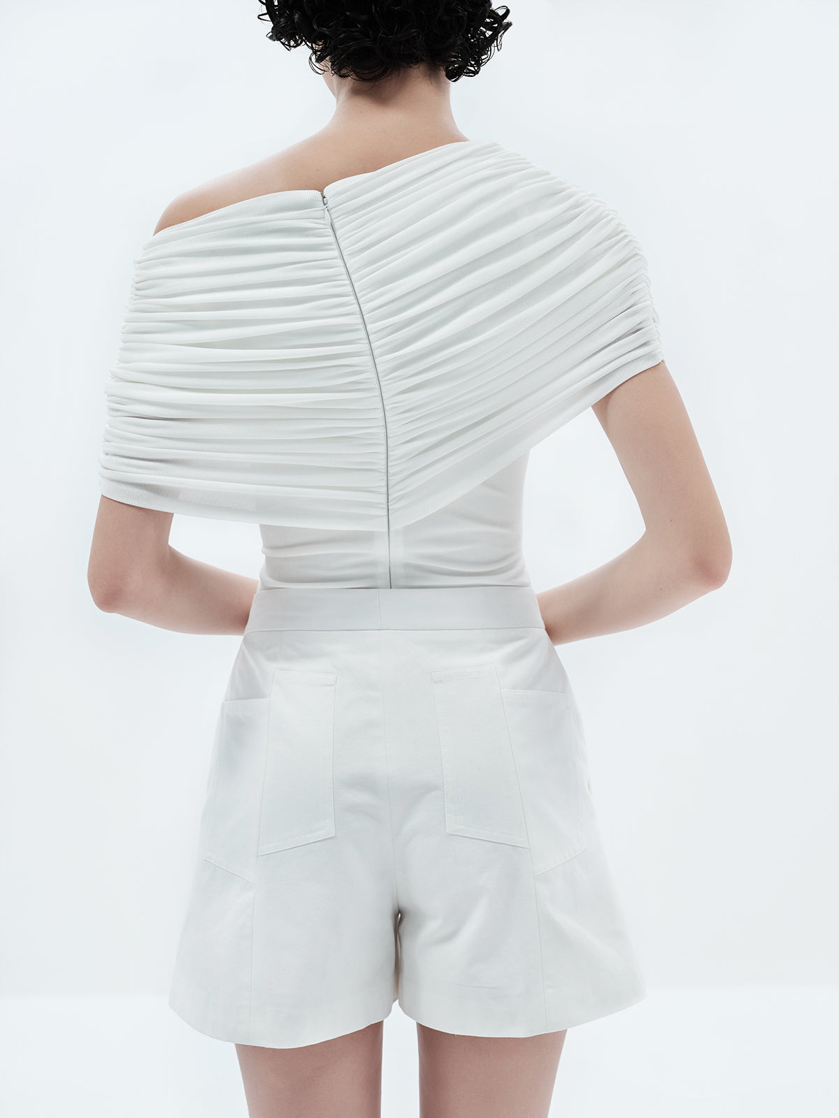 The Aurelia Bodysuit is a wardrobe essential we can’t get enough of! Its versatile design allows you to wear it off-shoulder or style it as a chic one-shoulder piece. Pair it with our recommended bottoms—skirts, pants, or shorts—to create multiple elevated looks, making it a true investment piece for effortless, stylish ensembles.
