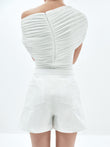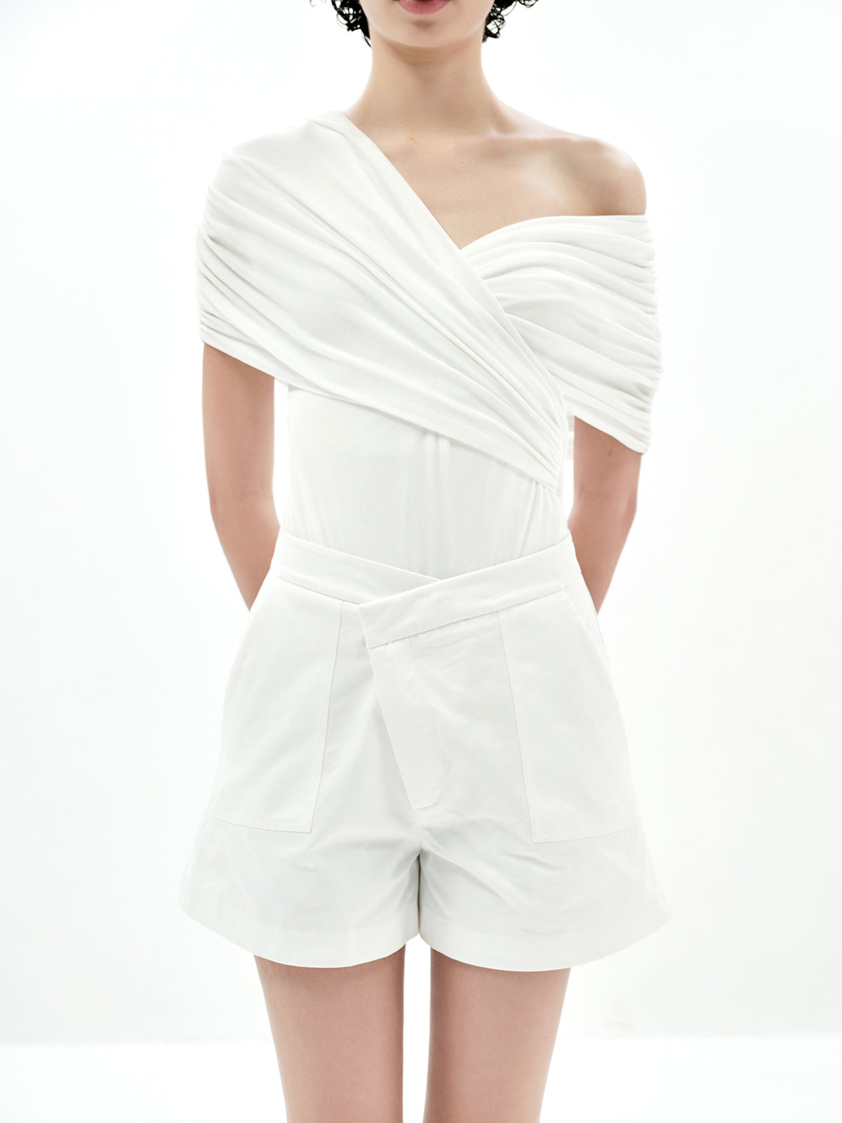Elevate your wardrobe with our Asymmetrical Criss-Cross A-Line Shorts, a versatile staple designed for effortless styling.