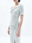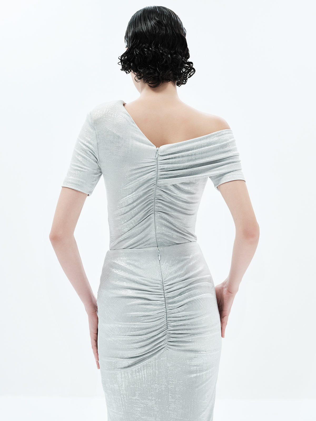 Create multiple chic looks with our Statement One-Shoulder Bodysuit, featuring exaggerated shoulder pads and a ruched center drape for a flattering, sculpted silhouette. Style it effortlessly with our Vivenne Skirt, Laticia Shorts, or our favorite Eddie Pants for versatile, elevated ensembles.