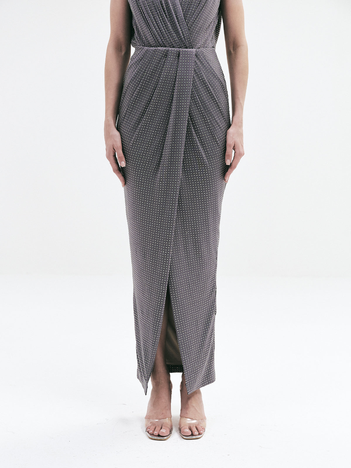 Find a true match for this embellished drape cross over skirt with any of our Tiana crop tops or Tiana bodysuits and create an elevated co-ord look.
