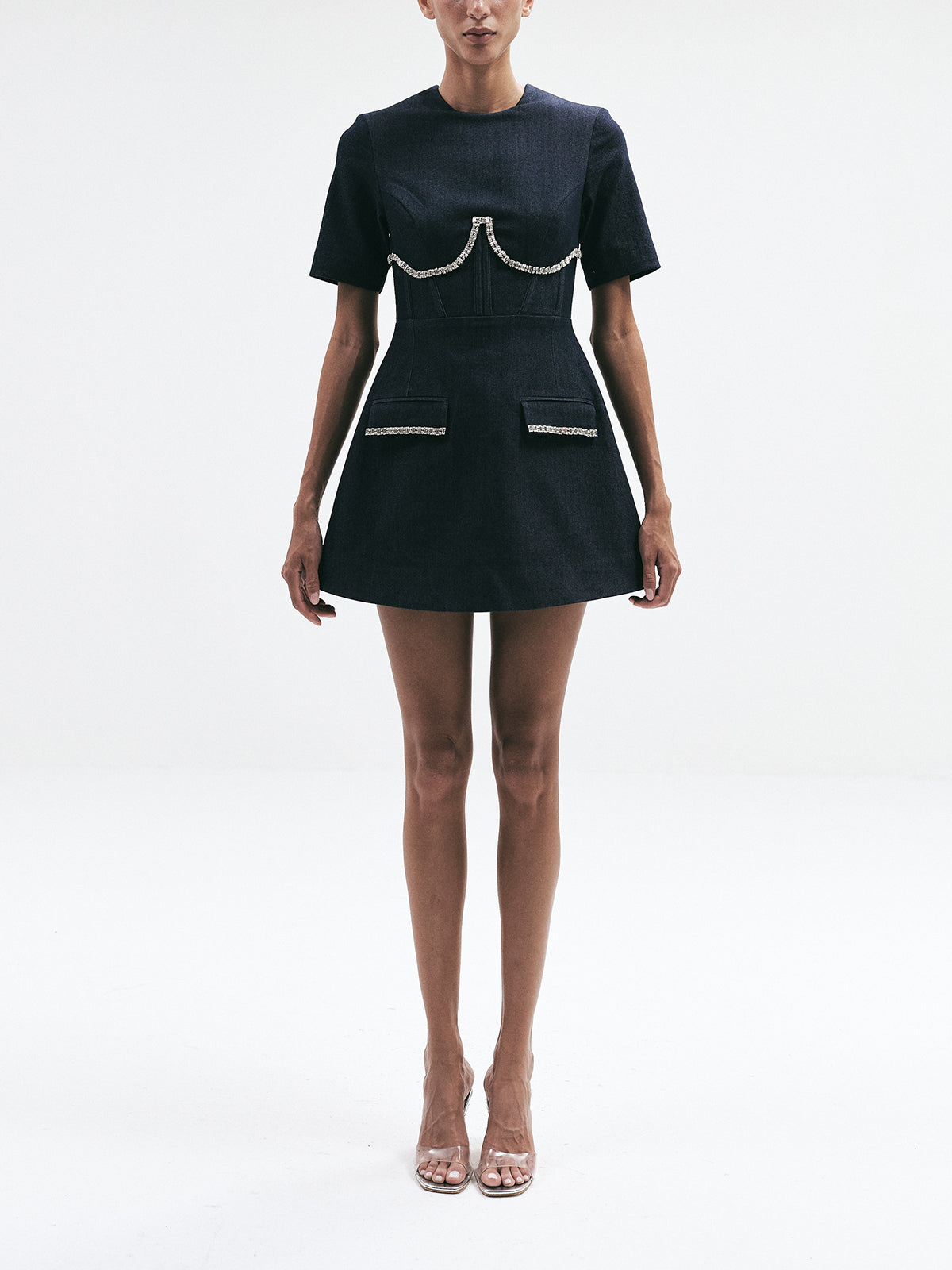 Turn heads in our Corset Detail Embellished Mini, a striking design featuring a structured corset-inspired bodice that enhances your silhouette. This mini dress exudes confidence and sophistication in every detail, making it the perfect choice for special occasions or nights out.