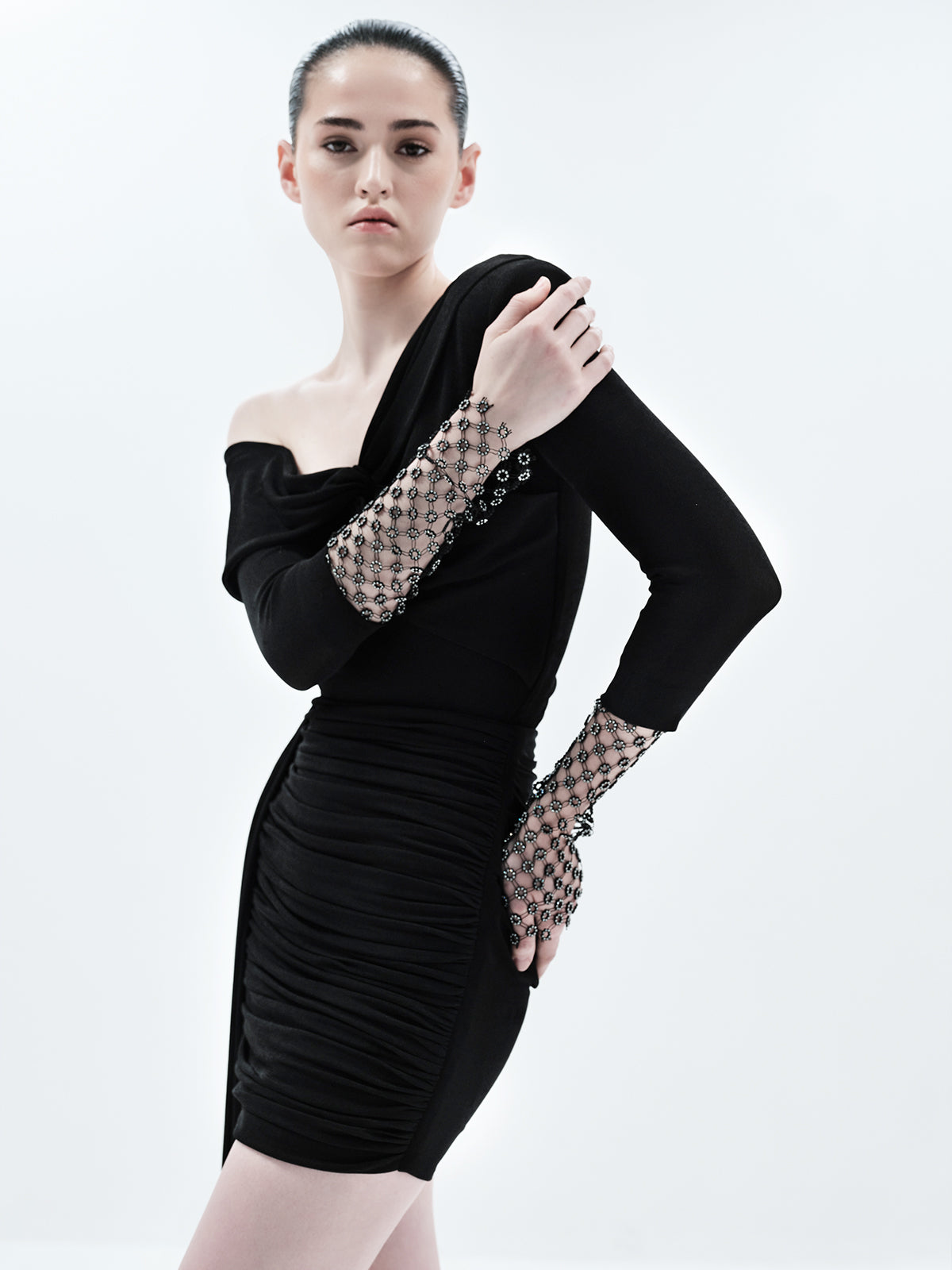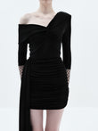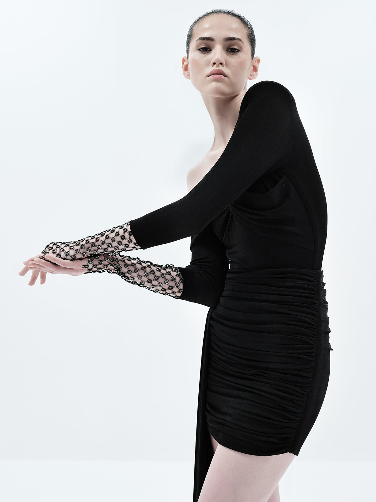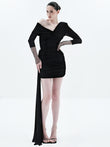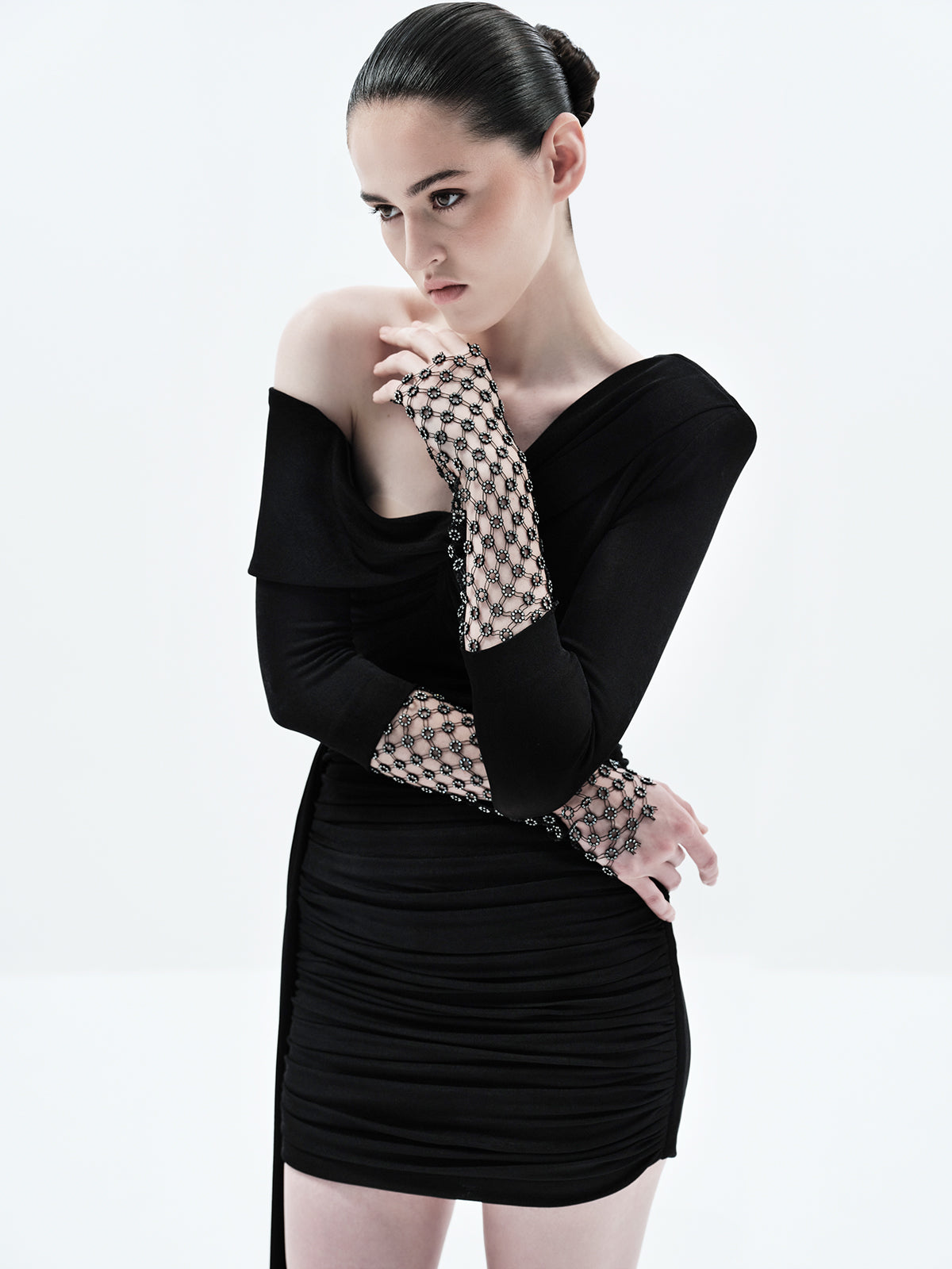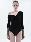 Make a bold statement with our Jemima Draped Bodysuit, where modern design meets timeless elegance. The artful draping sculpts a flattering silhouette, while statement cuffs add a touch of glamorous sophistication. Perfect for styling with pants, skirts, or shorts, this versatile piece blends edge and refinement effortlessly, ensuring you turn heads wherever you go.