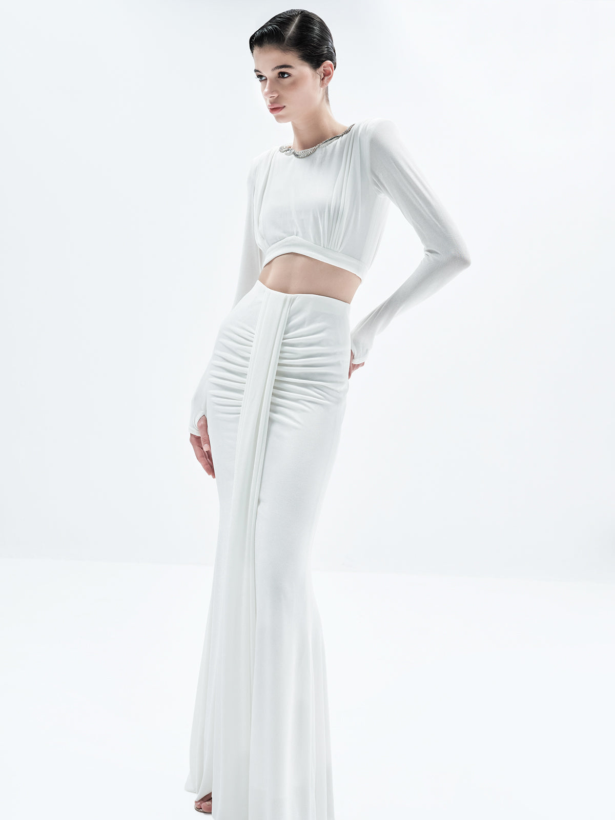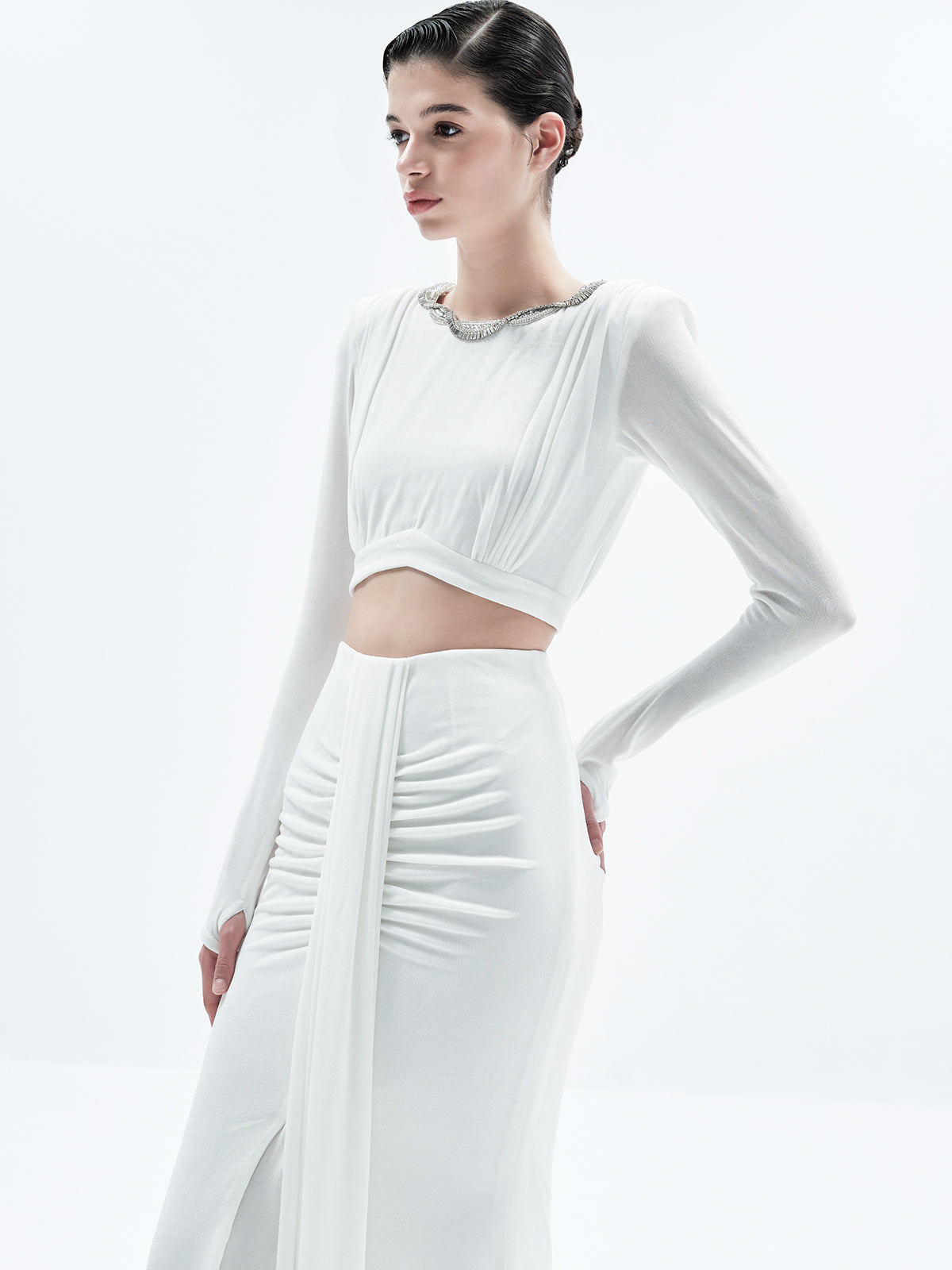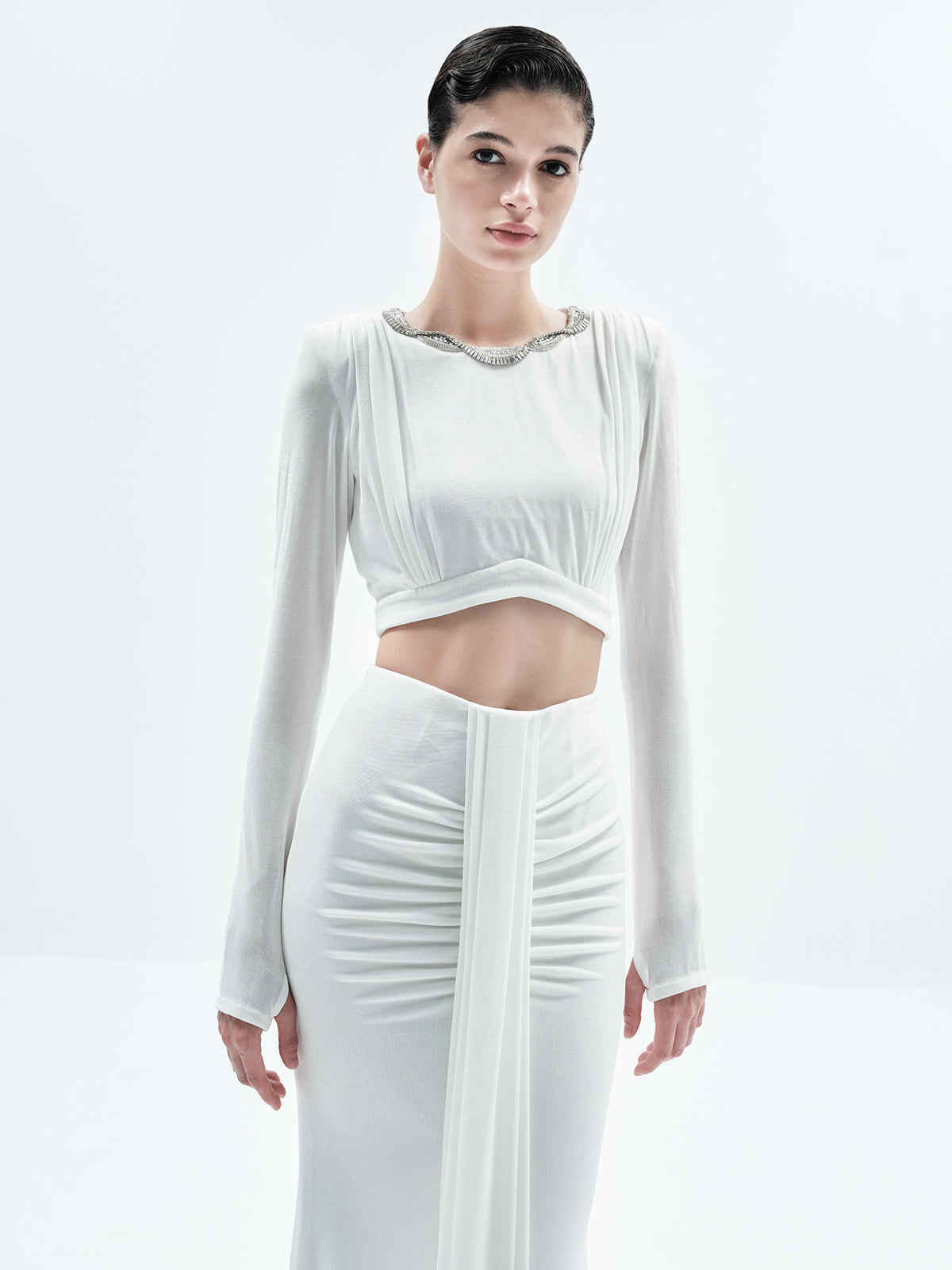 Statement Neck Embellished Pleated Crop