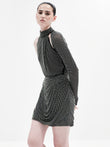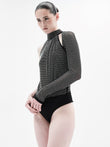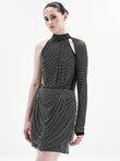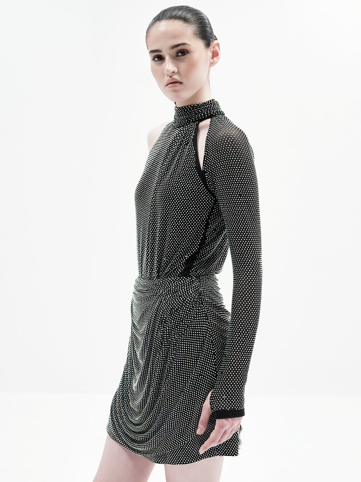Shine in our Crystal Mesh High-Neck Bodysuit, featuring a dramatic one-sleeve design with chic thumbhole detailing. Crafted from a luxurious crystal mesh fabric and draped meticulously at front as well as back, to deliver a flattering yet forgiving fit. This bodysuit ensures comfort without compromising on style. This bodysuit is the ultimate choice for any occasion, easily paired with our Maria pants, Laticia shorts, or the coordinating crystal maxi skirt to create a show-stopping ensemble that turns heads wherever you go.