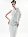 Sculpted High-Neck One-Sleeve Crystal Mesh Bodysuit