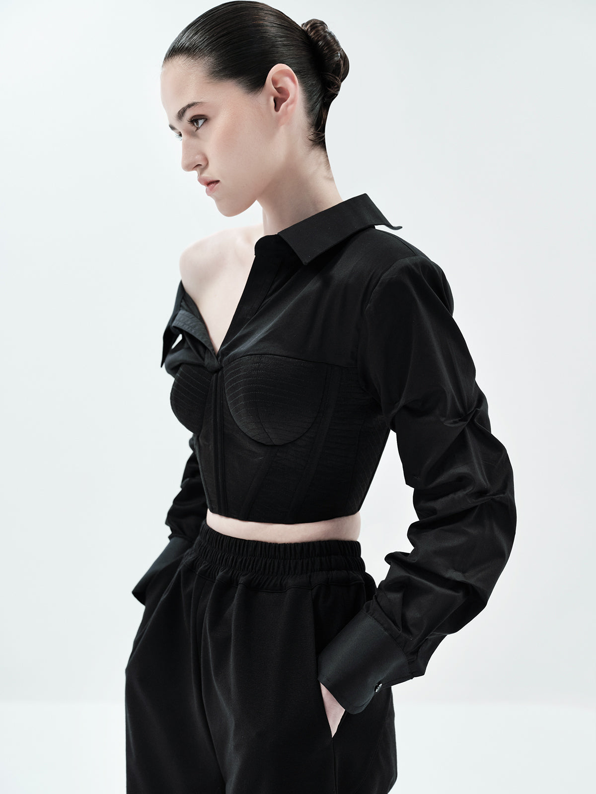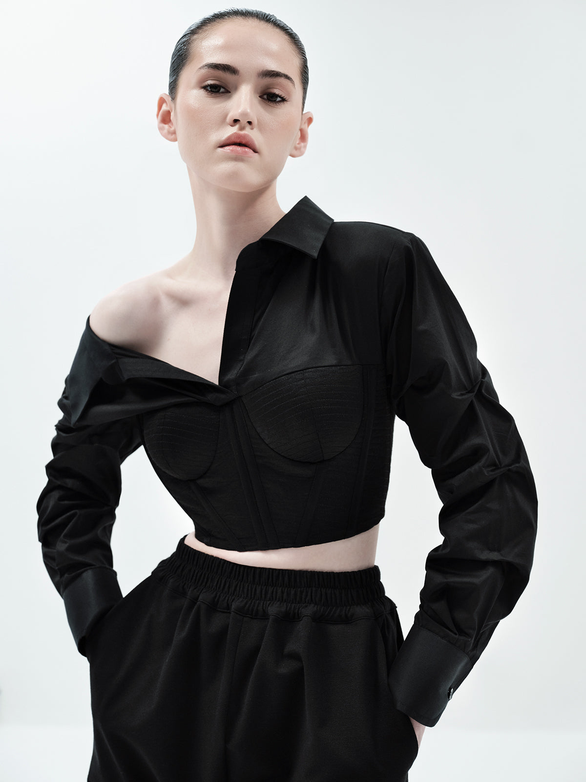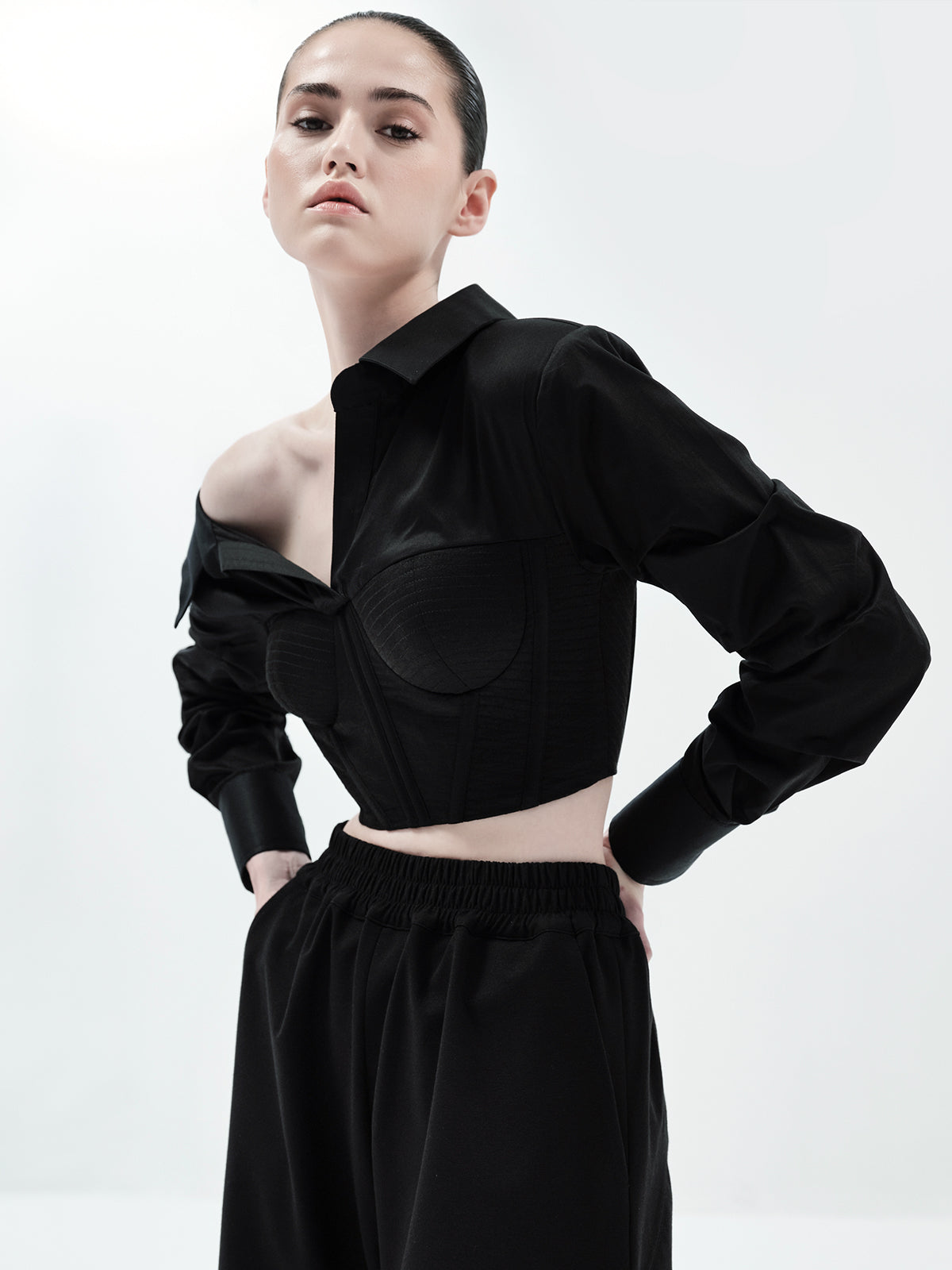 Asymmetric Corset Crop Shirt