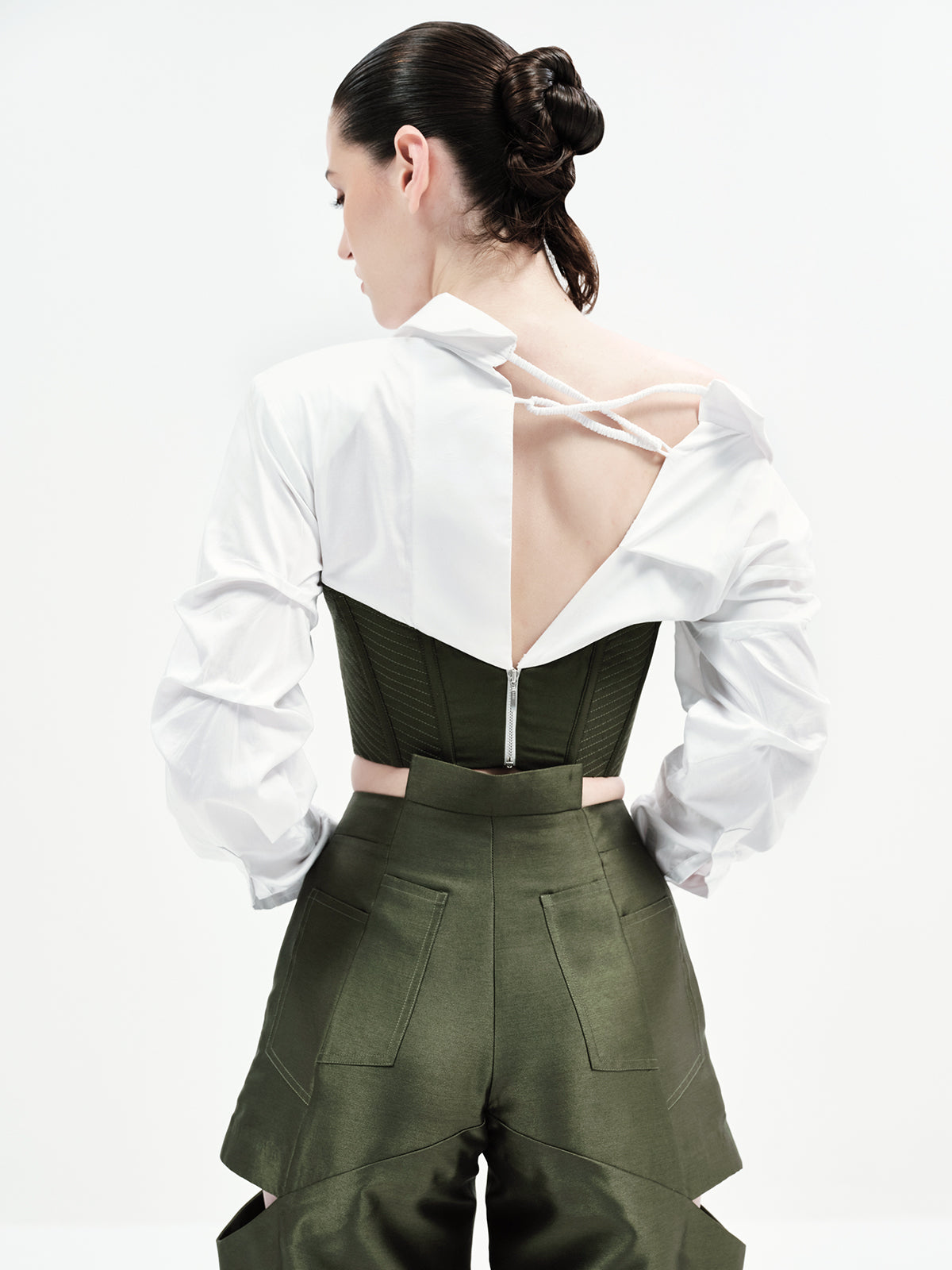 LANA CROP (White & Olive)