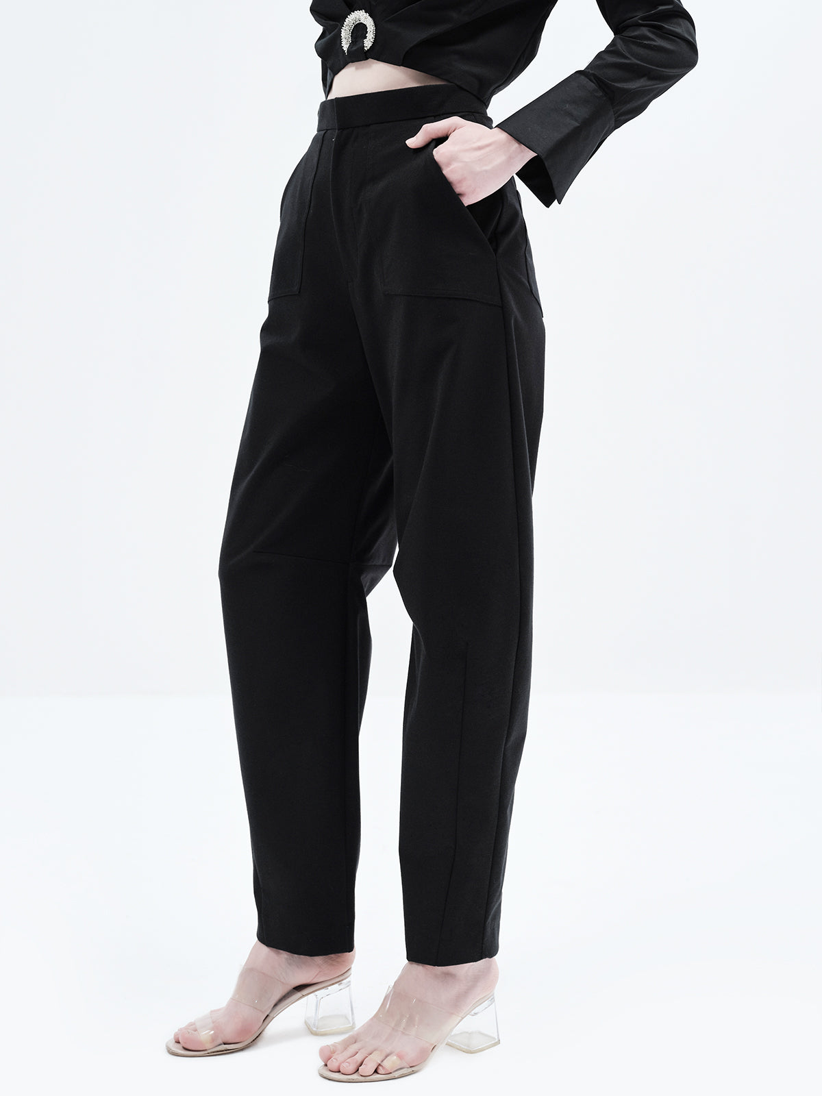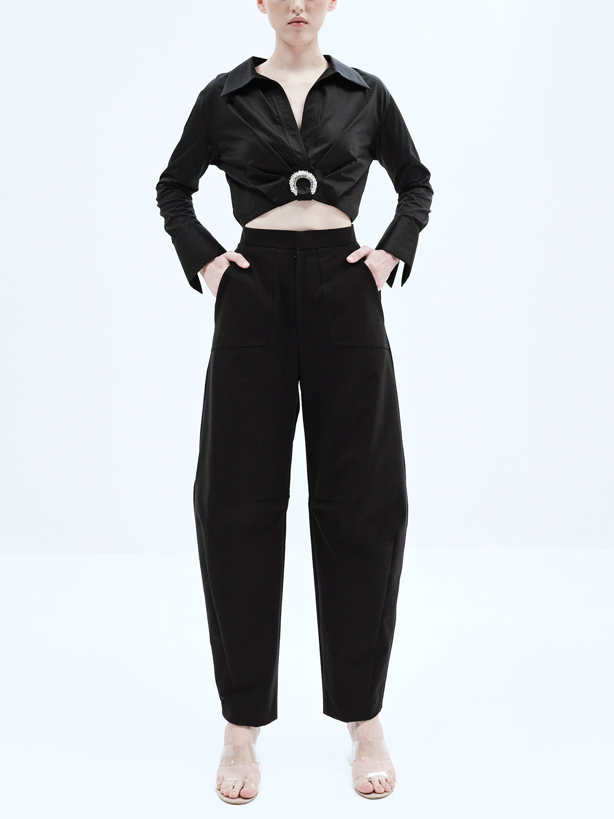 Just like our Eddie pants, this barrel Pant features a flattering high-waisted cut and unique horseshoe detailing for a signature statement. Effortlessly styled for errands or elevated day-to-night looks, these pants combine comfort with contemporary polish