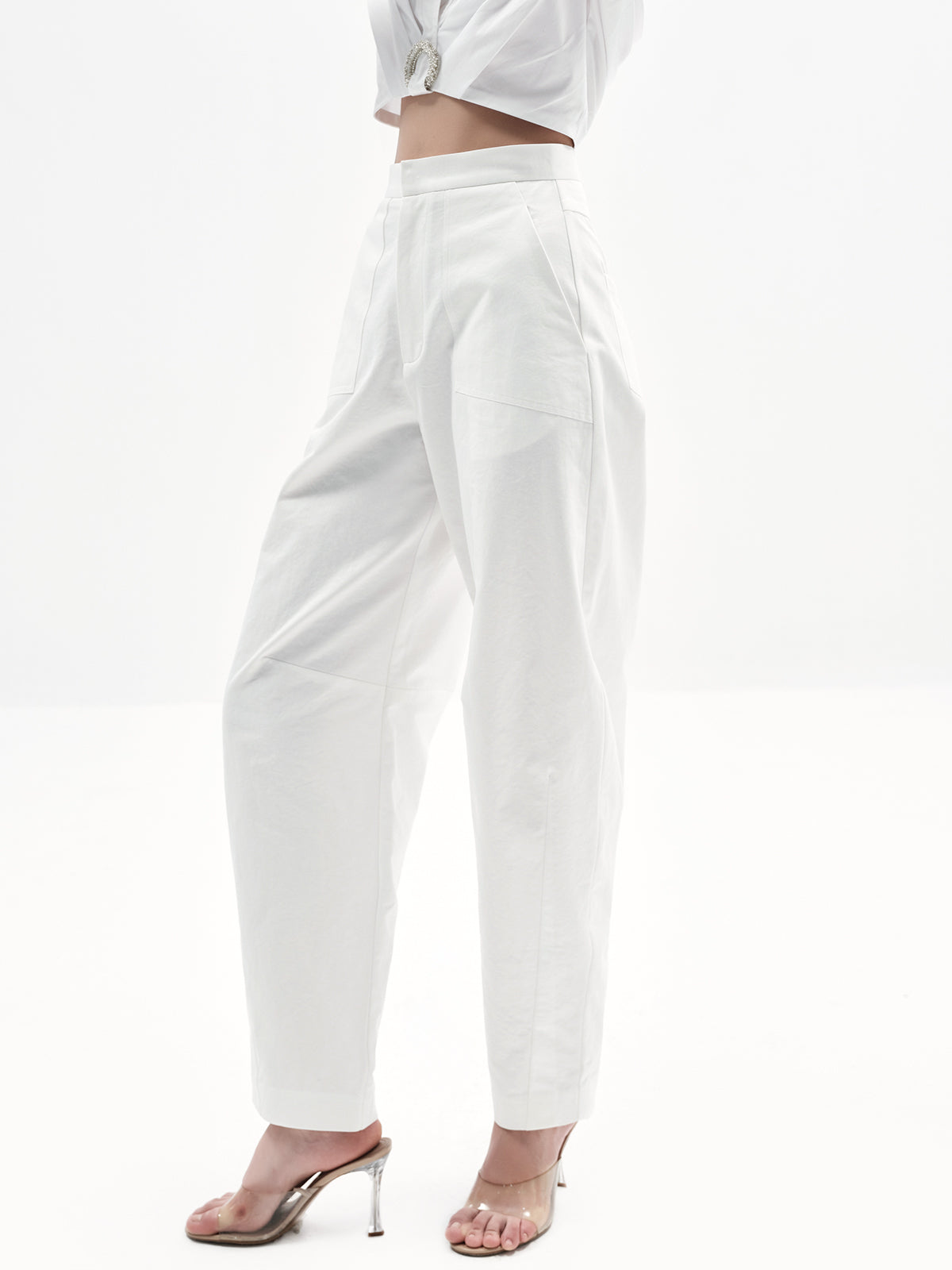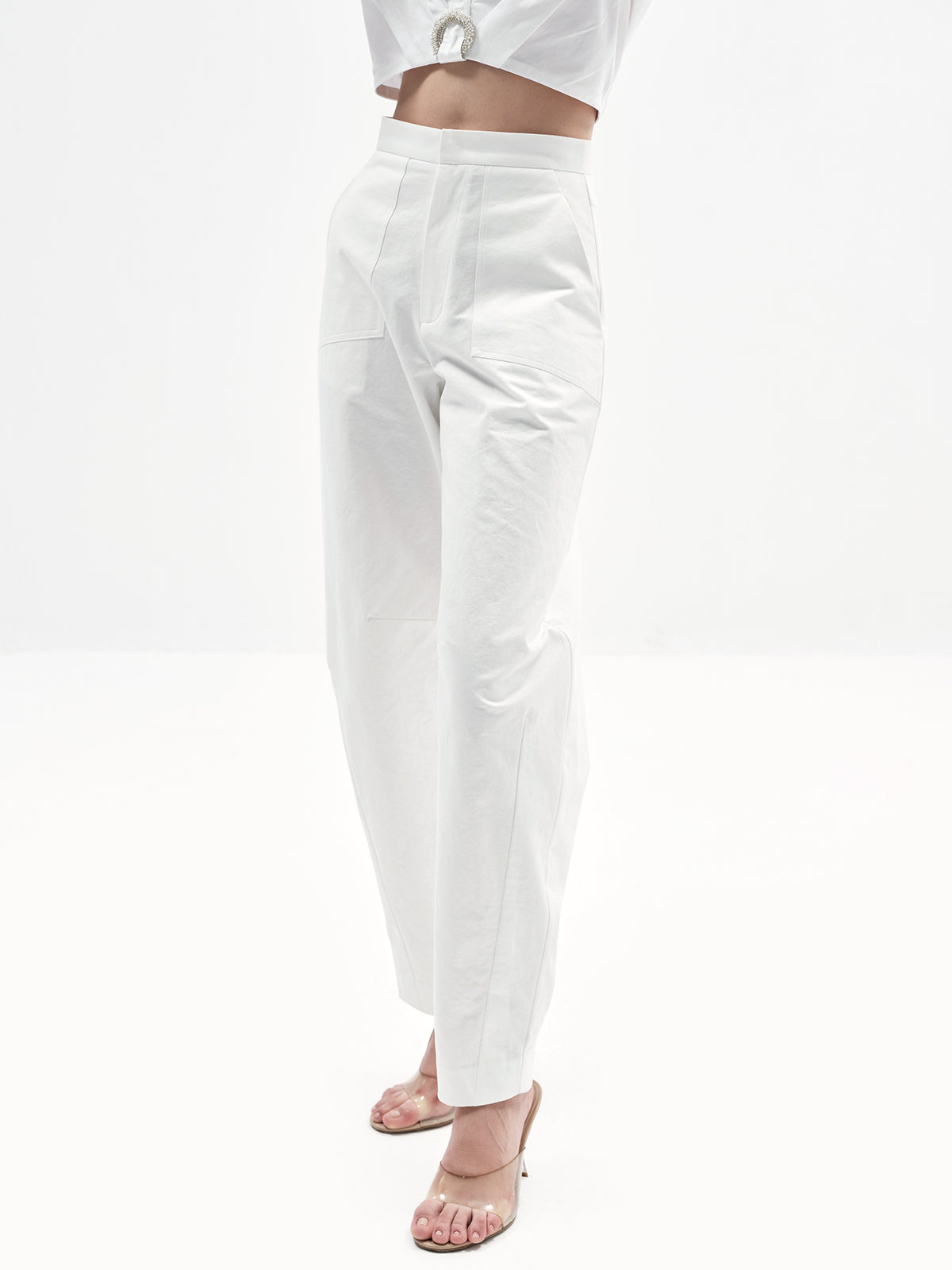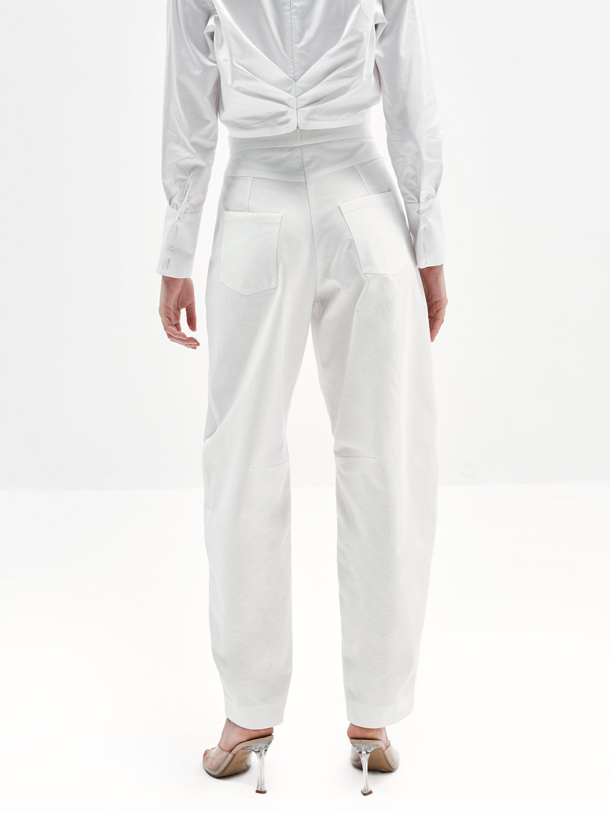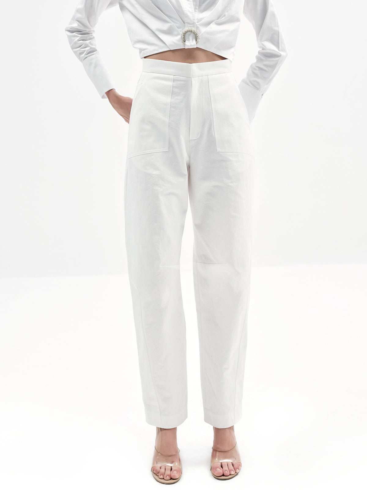 Just like our Eddie pants, this barrel Pant features a flattering high-waisted cut and unique horseshoe detailing for a signature statement. Effortlessly styled for errands or elevated day-to-night looks, these pants combine comfort with contemporary polish