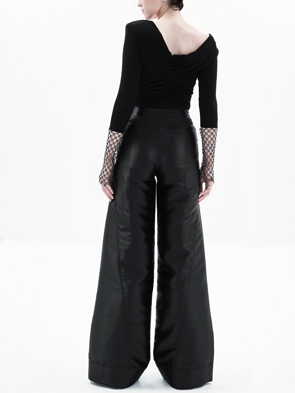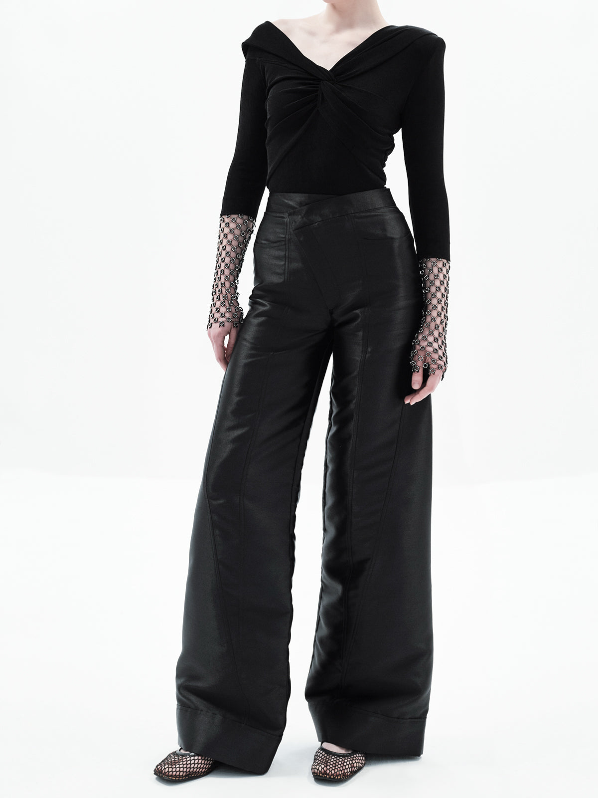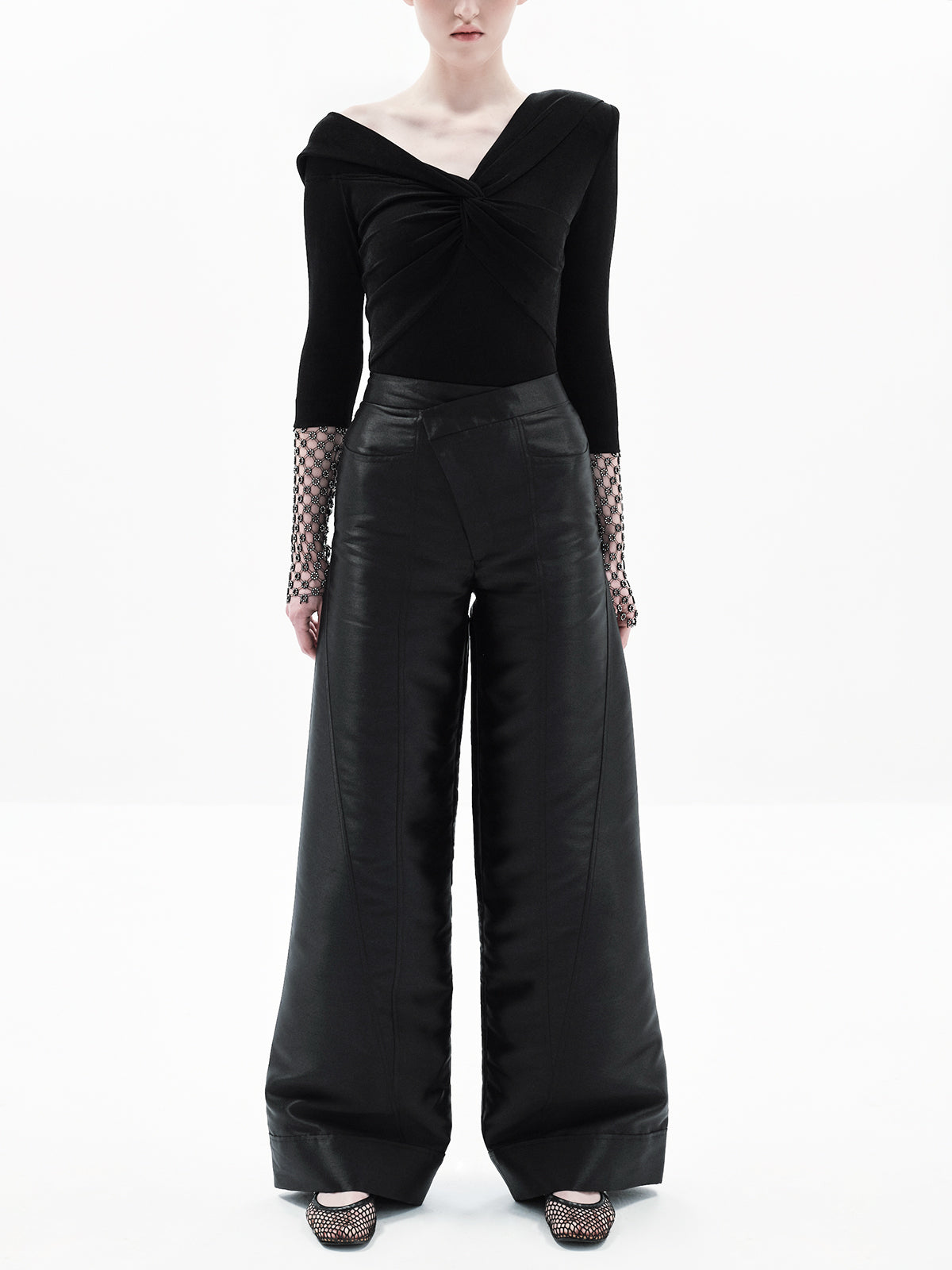 Elevate your wardrobe with our High waist Crossover Wide leg trousers, a versatile staple designed for effortless styling. The unique criss-cross silhouette adds contemporary edge, while the wide-leg structure enhances the structure more. Pair with any of curated bodysuits or tops for polished, elevated ensembles that transition seamlessly from day to night.