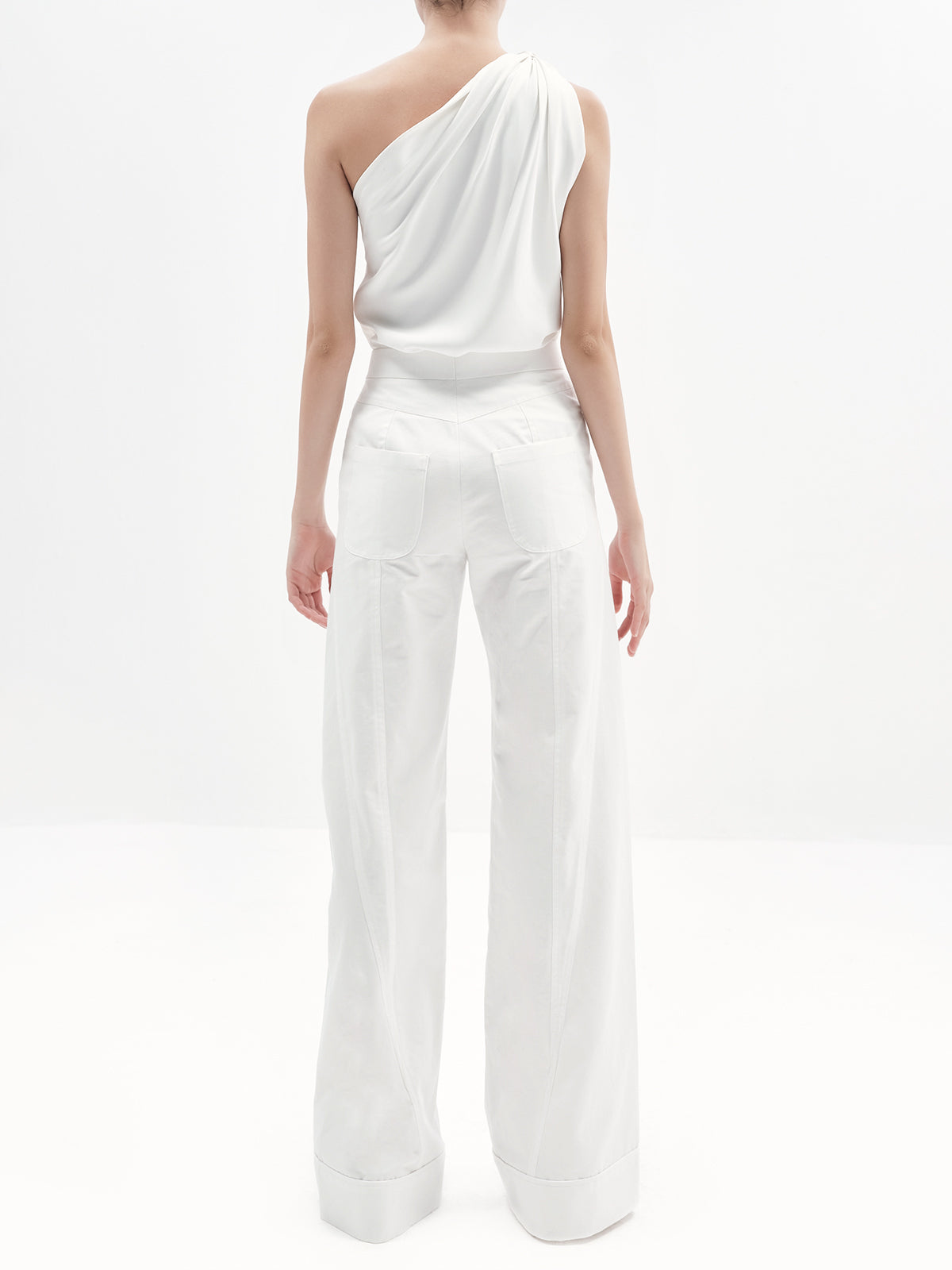 Elevate your wardrobe with our High waist Crossover Wide leg trousers, a versatile staple designed for effortless styling. The unique criss-cross silhouette adds contemporary edge, while the wide-leg structure enhances the structure more. Pair with any of curated bodysuits or tops for polished, elevated ensembles that transition seamlessly from day to night.