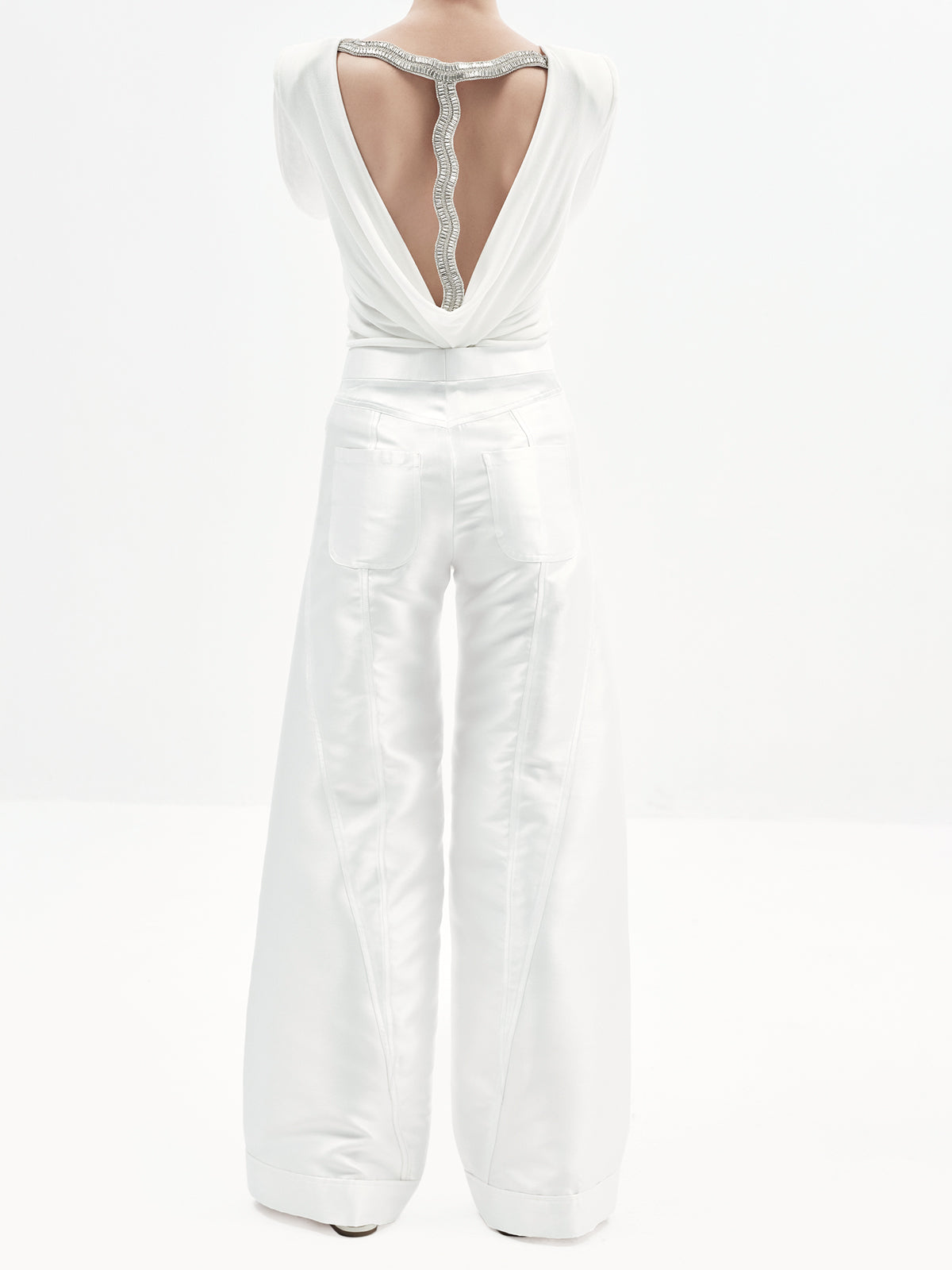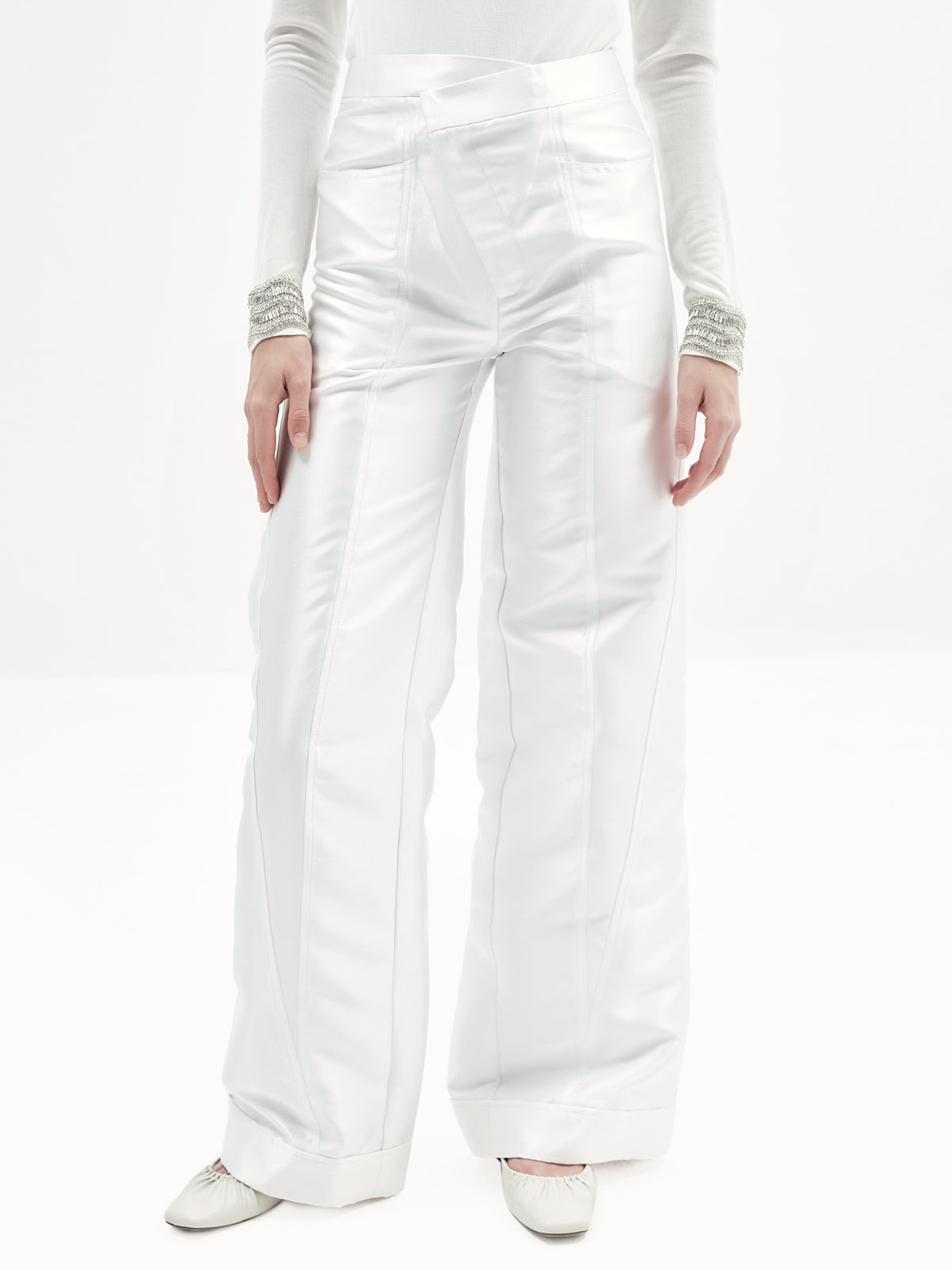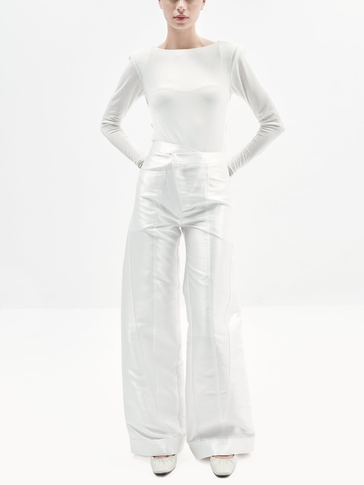 Elevate your wardrobe with our High waist Crossover Wide leg trousers, a versatile staple designed for effortless styling. The unique criss-cross silhouette adds contemporary edge, while the wide-leg structure enhances the structure more. Pair with any of curated bodysuits or tops for polished, elevated ensembles that transition seamlessly from day to night.
