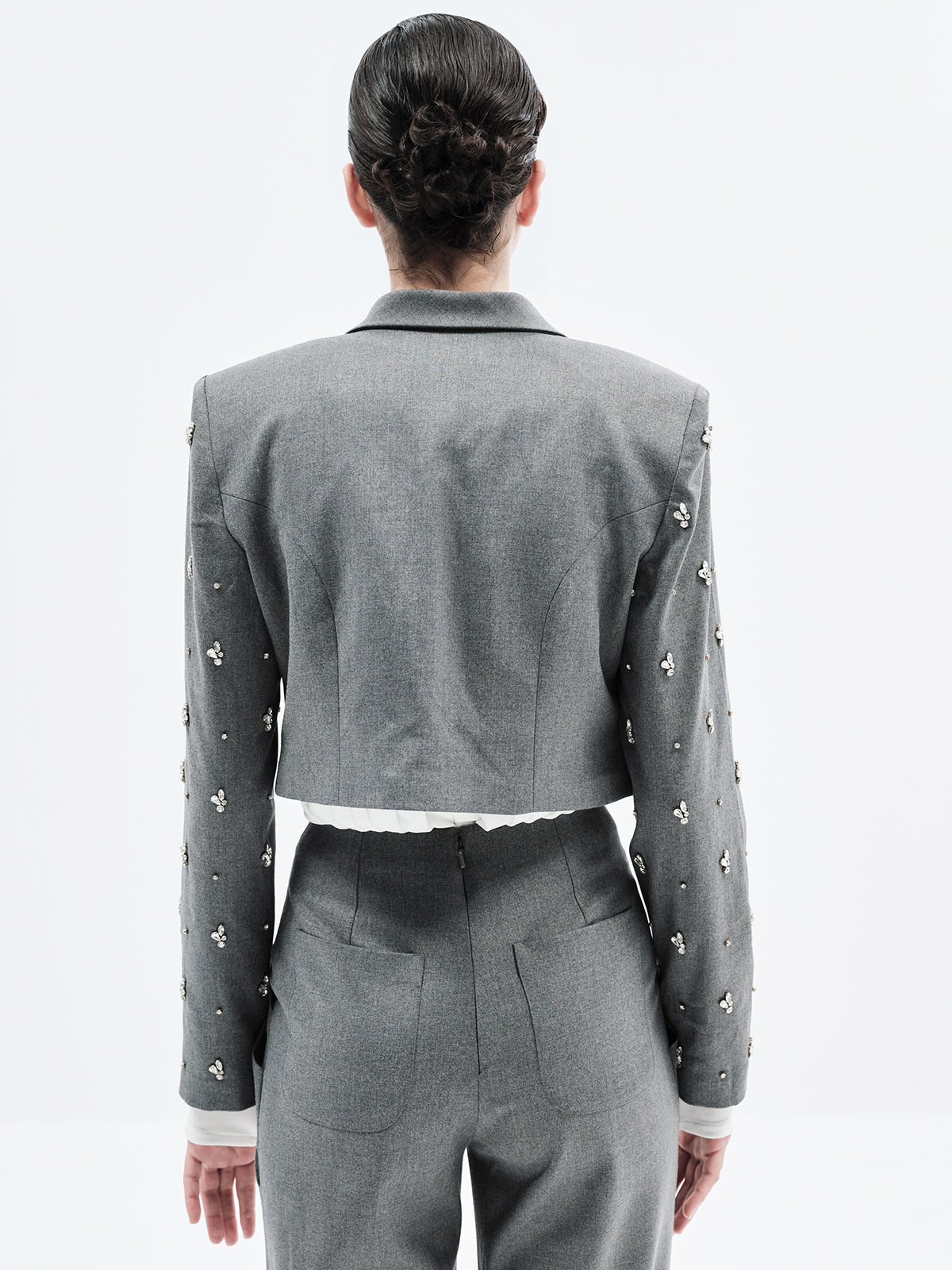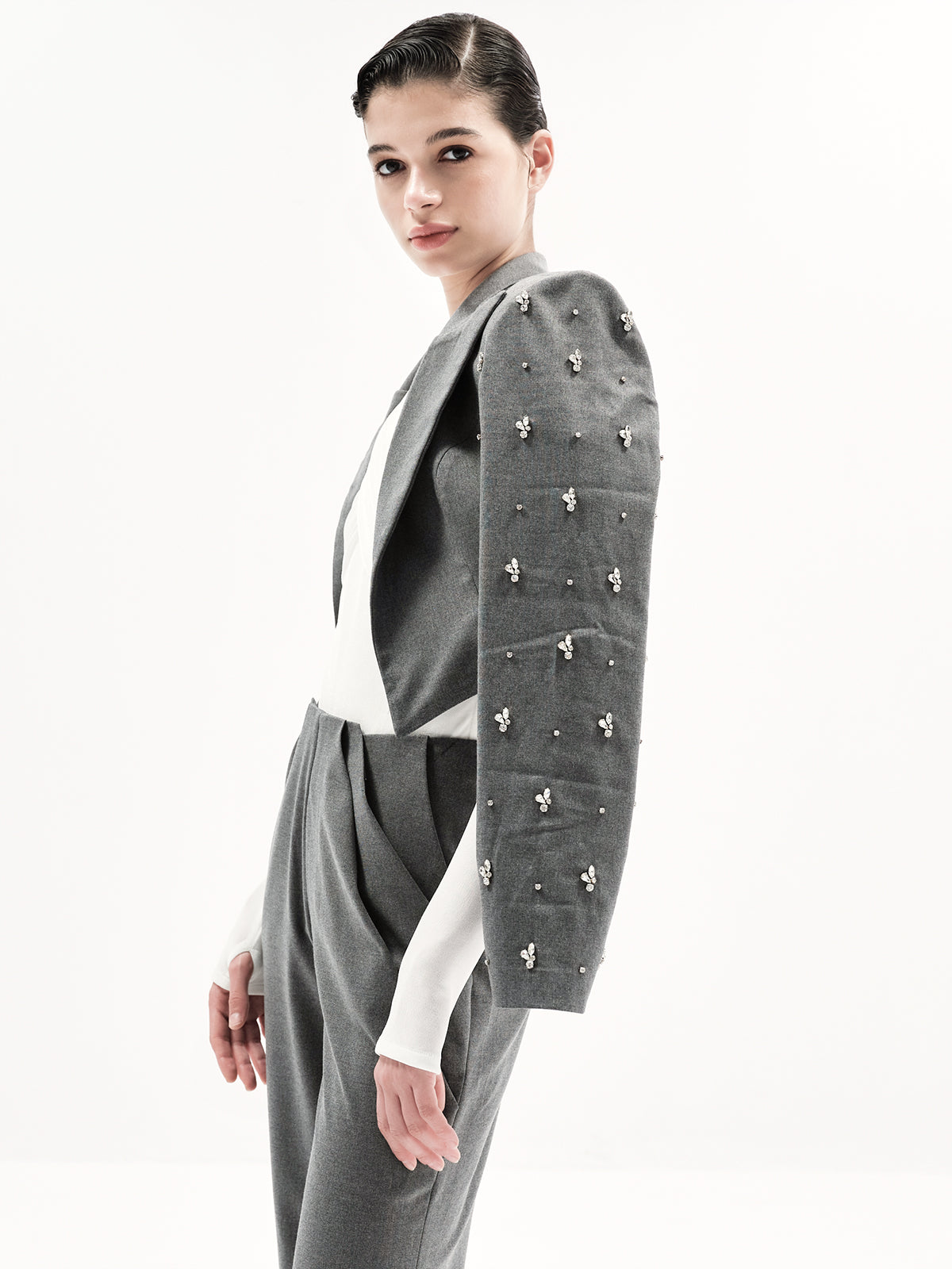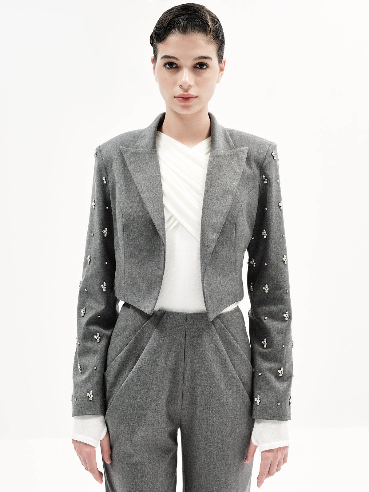 Statement Sleeves Cropped Jacket with Exaggerated Shoulder