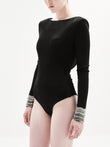 Sleek and sophisticated from the front, this bodysuit commands attention from behind with a dramatically embellished open back and cuff detailing. Pair with our Vienna or Vivienne skirts for a polished, dress-inspired look, or style with the Rina Mini Skirt for an elevated, edgy vibe