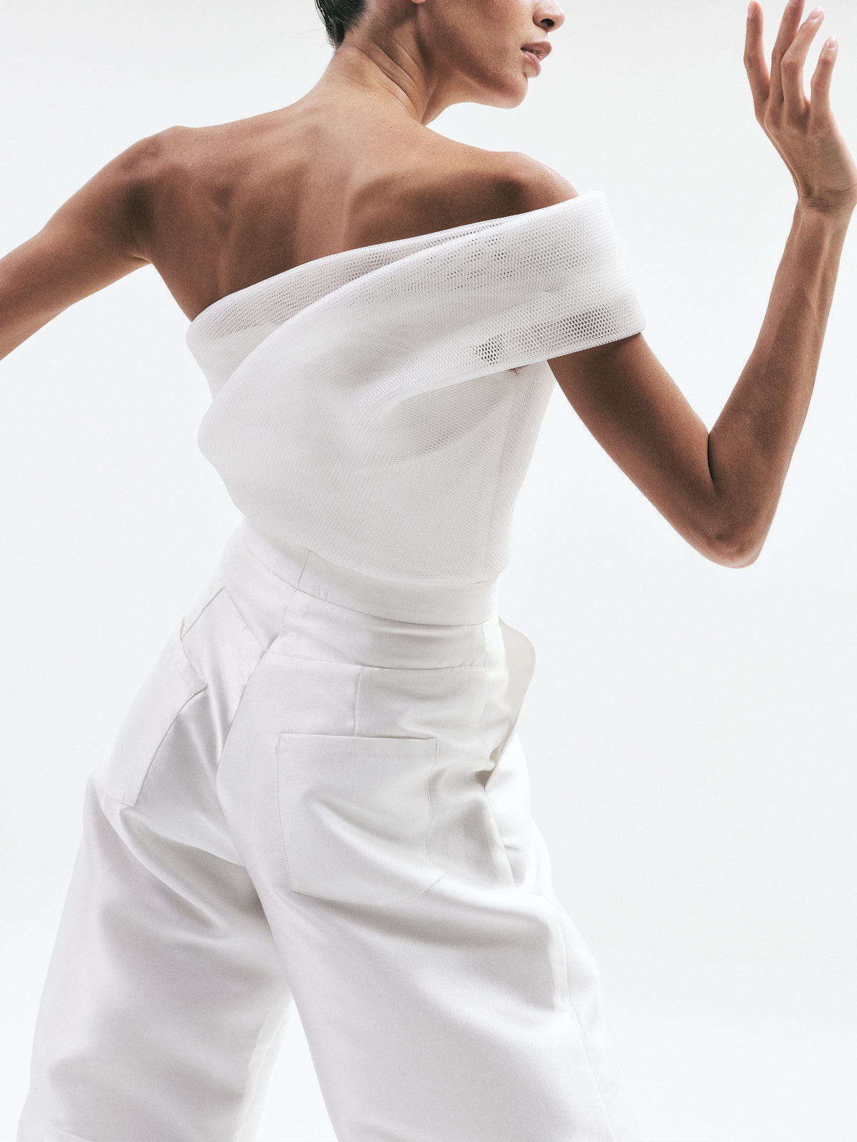 Sculpted in scuba mesh ,Mix and match our draped statement bodysuit with our Laticia shorts, or the beloved Eddie pants for a variety of standout looks.