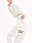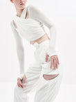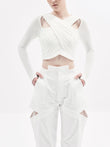 Exuding understated elegance, this peekaboo criss-cross draped crop is tailored to sit perfectly at your high waist, with thumbhole detailing adding a subtle, contemporary edge. Flattering, comfortable, and endlessly versatile, it pairs effortlessly with our skirts, tailored trousers, or shorts for refined, elevated styling.